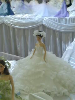 I saw the Barbie Dolls Fair in one of my self-outings recently, and I urged to capture a few nice shots of these beautifully sewed gowns worn on the dolls besides spending some time appreciating the pretty handmade gowns by the tailors.I started to think how patient of them to have sewn such a nice and tiny clothe one by one, with minimum 30 pieces of them displaying there.However, I start to see the success of the advertising effect of this mini dolls fair,because most of the individuals will buy the dealer' s idea of merging jeweleries with wedding gowns since both are complementary during wedding occasion. Moreover, the public has been pampered to fancy cute and tiny things since the day dealers like to produce goods in mini sized.